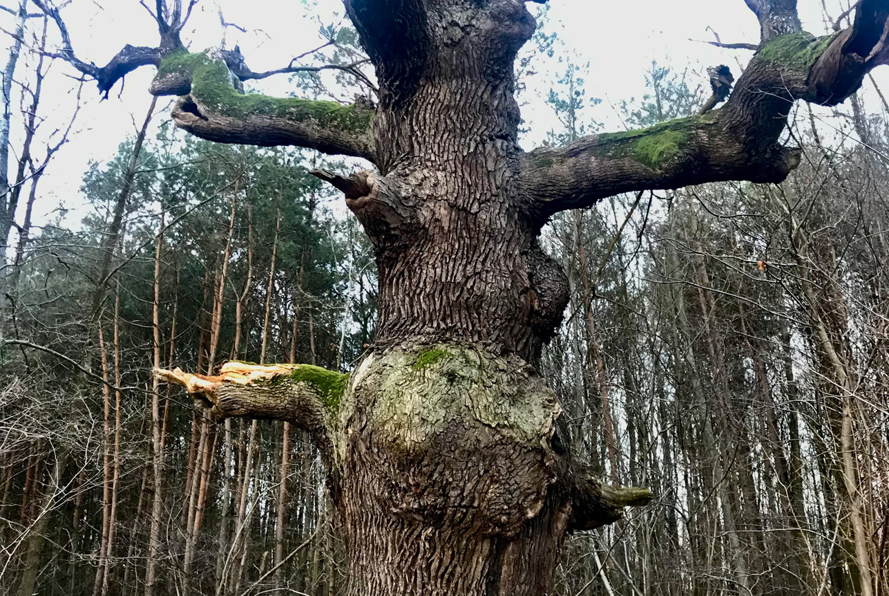 dąb szypułkowy(Quercus robur L), wiek 350 lat, wys. 22 m, obwód 501 cm