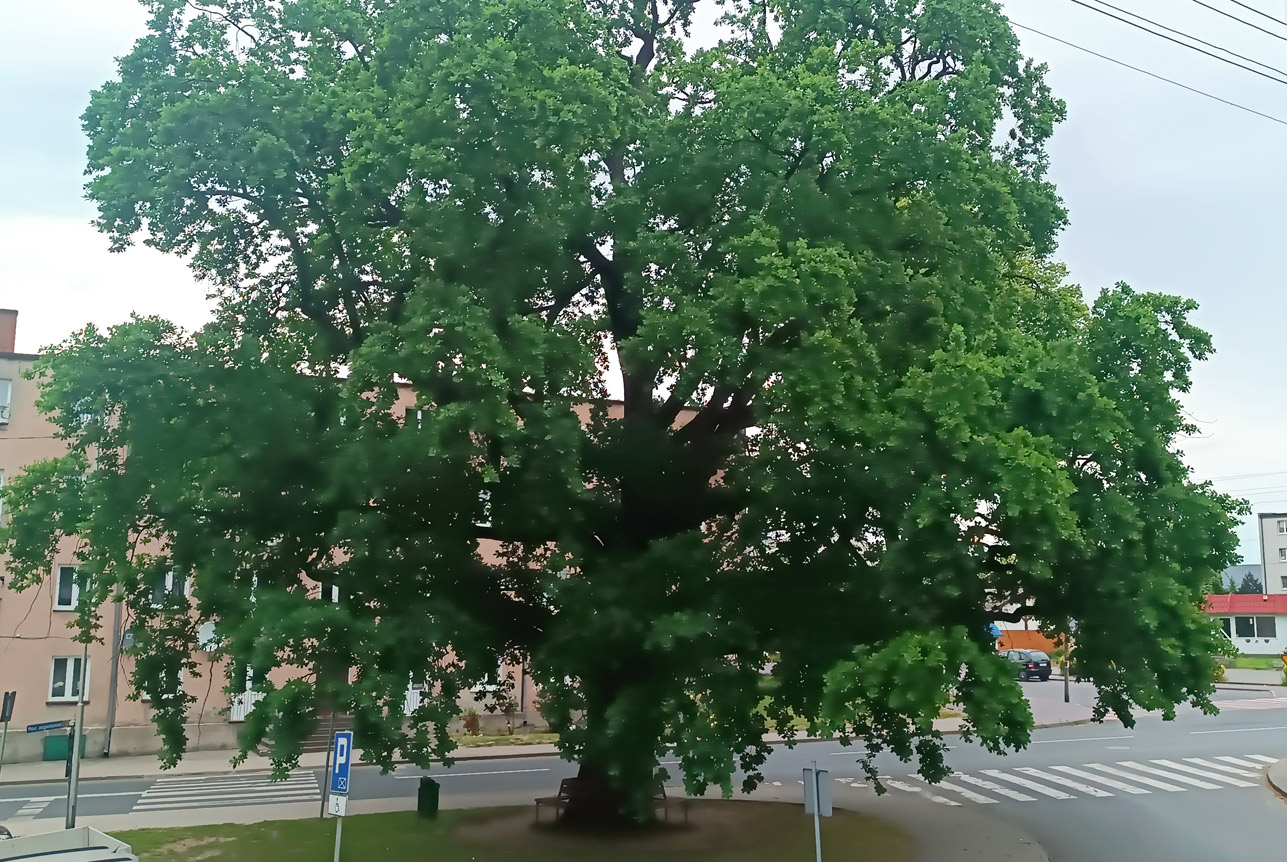 dąb szypułkowy(Quercus robur L), wiek 350 lat, wys. 22 m, obwód 501 cm