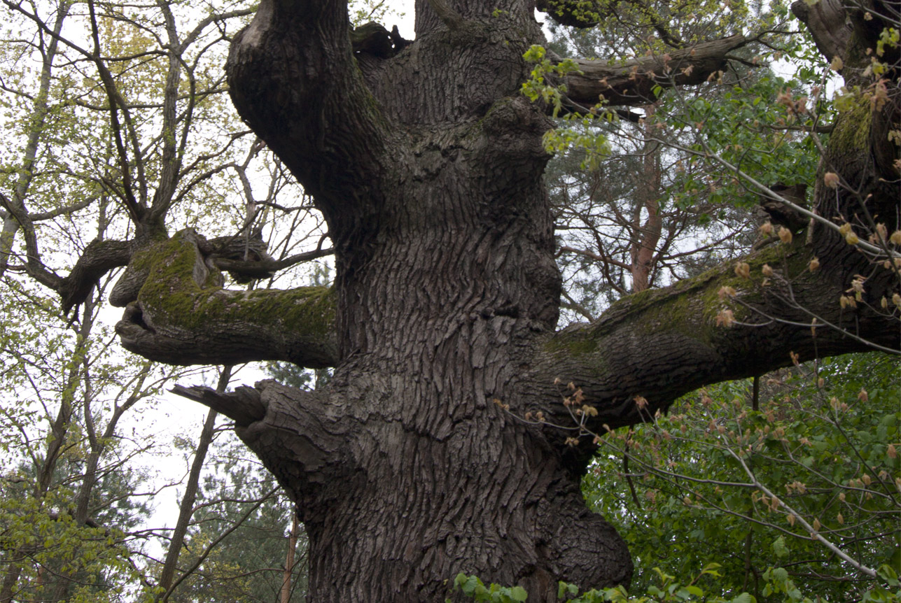 dąb szypułkowy(Quercus robur L), wiek 350 lat, wys. 22 m, obwód 501 cm